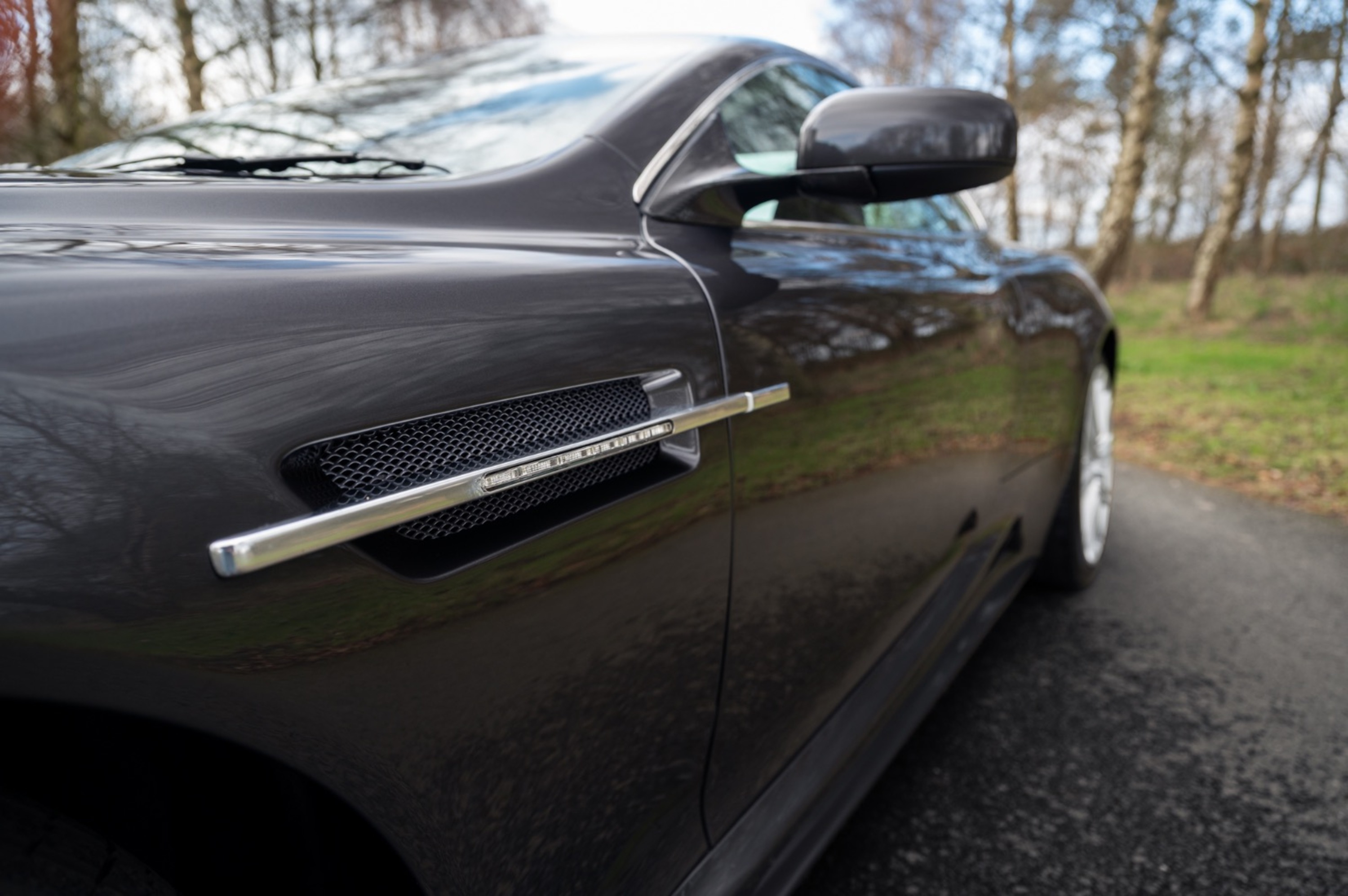 This DBS, a 2009 model year car, is finished in Quantum Silver (the shade used in the 2008 Bond film, Quantum of Solace) over Iron Ore leather. Our copy of an Aston Martin Heritage Trust 'One of...' certificate shows that the car was first registered in November 2008, and sold through Aston Martin Leeds. Our records show that 2,536 DBS Coupes were built in total, yet only 419 of those were 2+2 Automatic cars. The 'One of...' certificate shows that only one car was ever produced in Quantum Silver with Iron Ore interior; this one. All DBS are specified very well from factory, however this car also comes with: